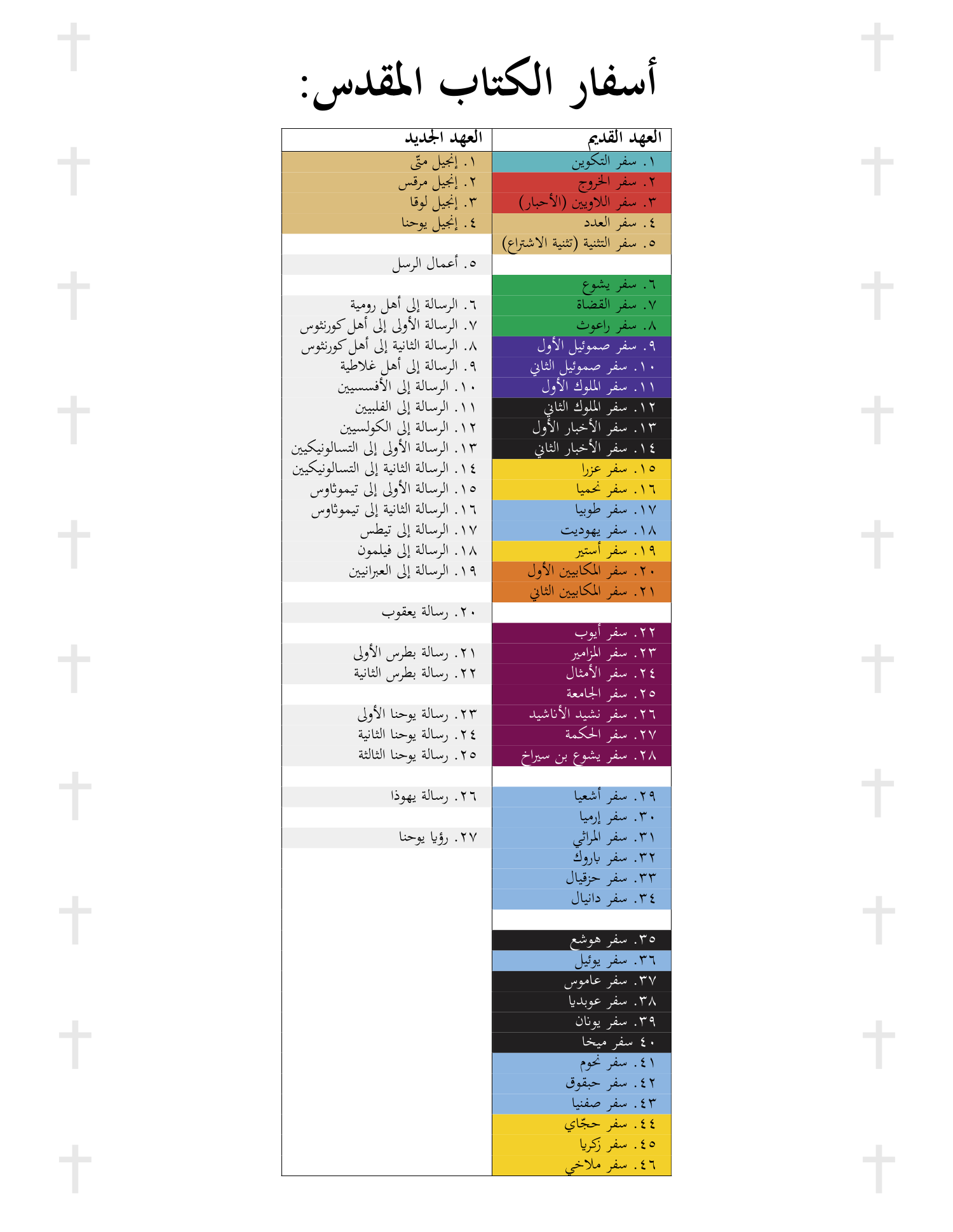 The Bible is the book which the Christians believe as the word of God and consider a Holy inspiration from God. It was written by 10s of people across 3 millennia, who wrote under inspiration each according to his own style. It is noteworthy to outline in this book that it was called by Syriacs and Arab Christians which were contemporaries to Muhammad as "The Holy Book". They still call it so until today. The significance of this name will be highlighted later, as the Quran refers to the Bible using the term "The Book", undoubtedly, The Holy Bible. The Bible is composed of two main parts: the Old Testament (before Christ), and the New Testament (after Christ). The Old Testament is composed of: